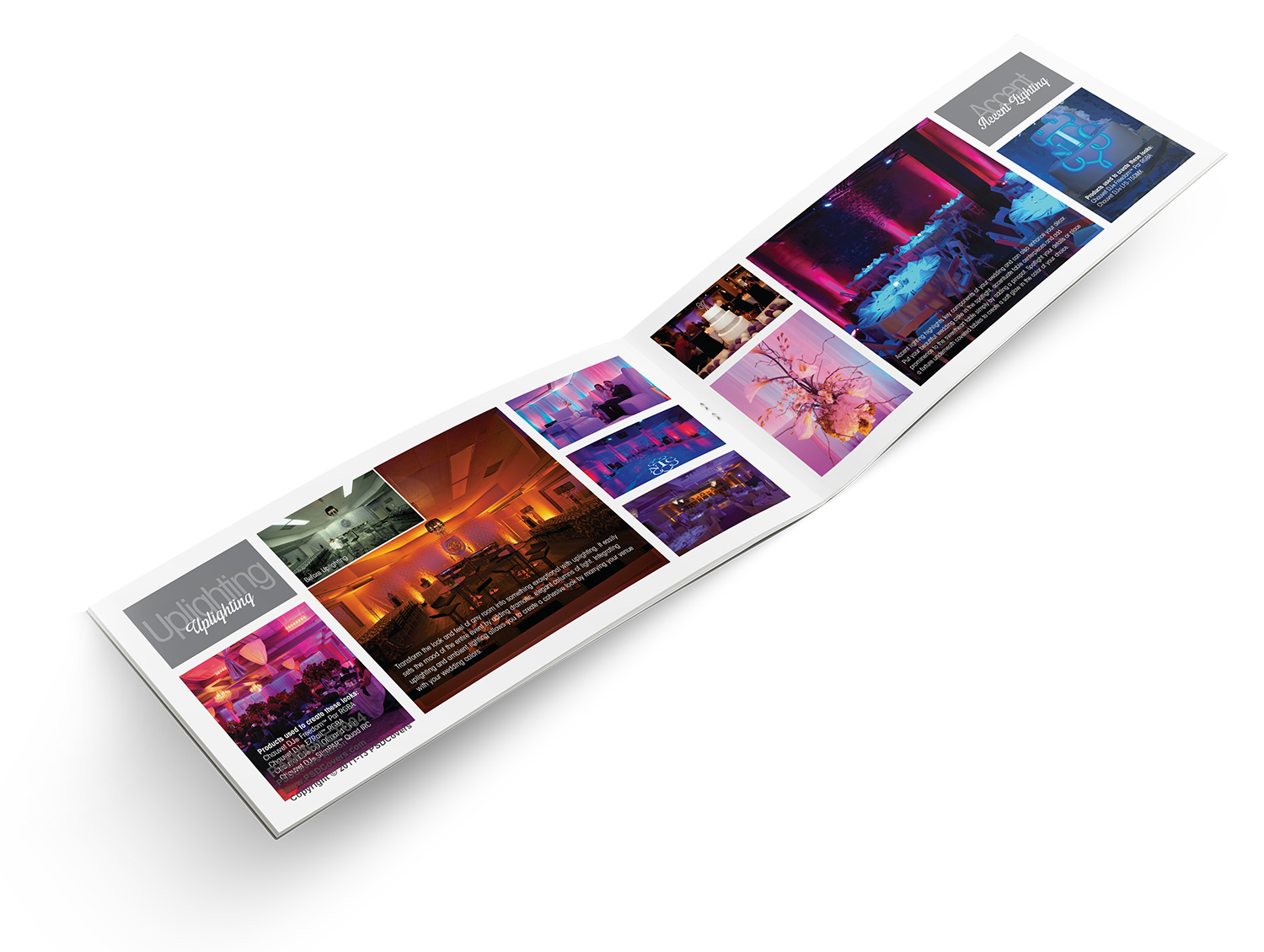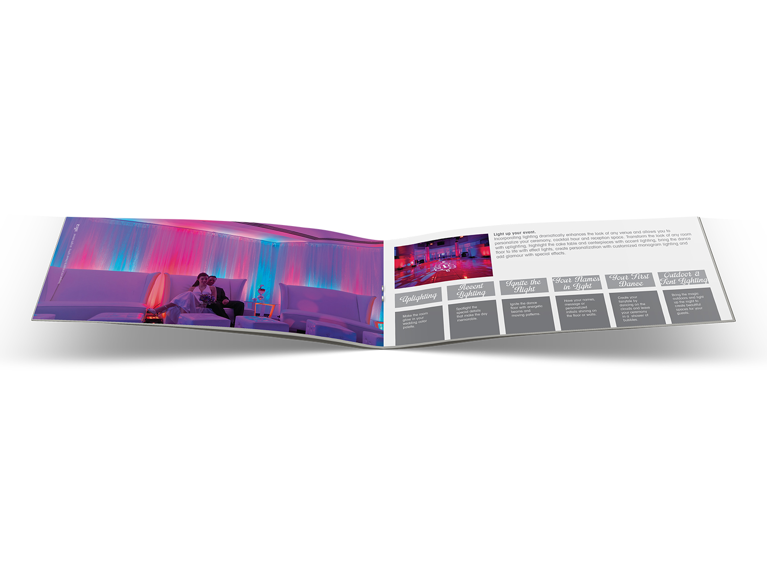 Chauvet Lighting focuses its marketing efforts towards the wedding and event planners segment, with the design of this 12-page brochure that provides beautiful lighting options and ideas to help boost their sales.