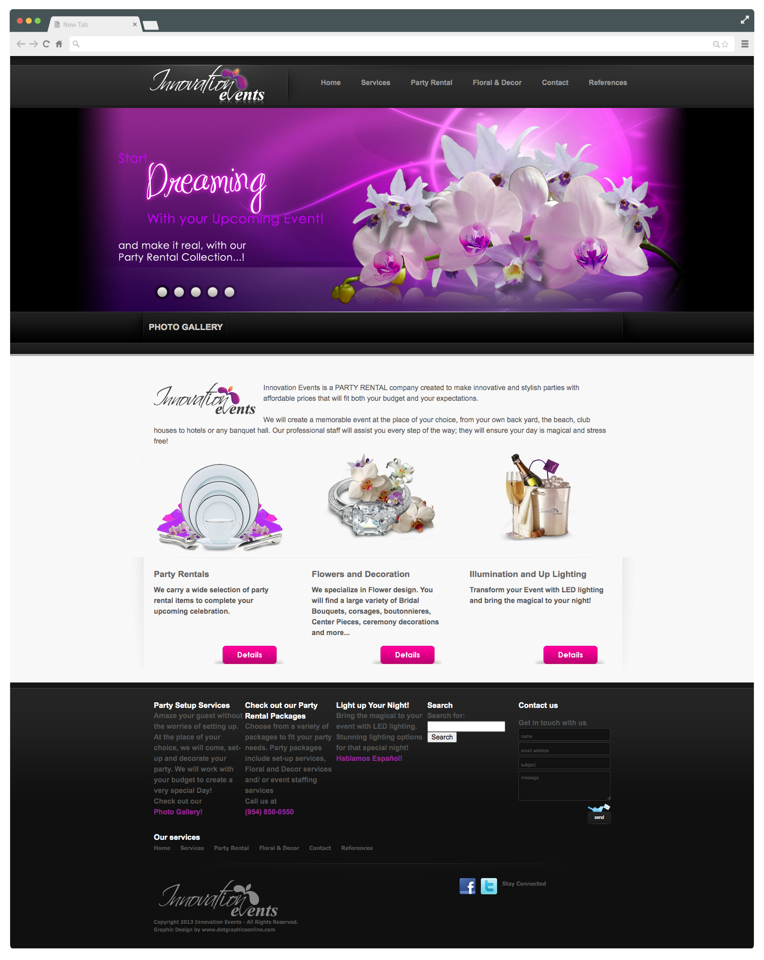 This new company specializes in social event coordination, party decoration, floral arrangements, and party supply rental. They needed to solidify their image with a more professional and cohesive look to strengthen their customer relationships and improve their online perception and performance.