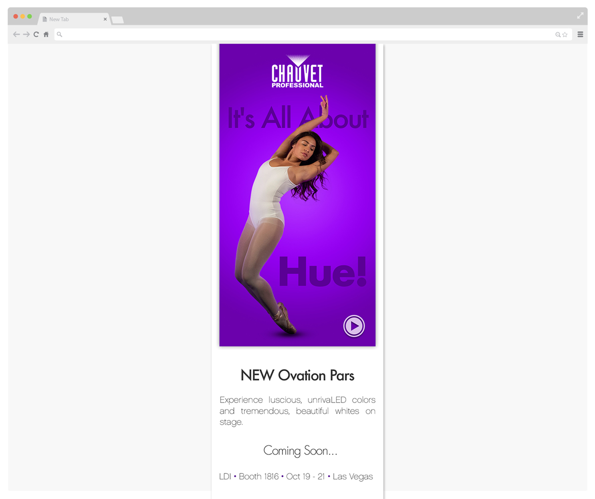 The brand CHAUVET PROFESSIONAL  wanted to give a push to its existing line of stage and theater lights. This campaign was designed to promote important product features such as the color temperature to illuminate the performer’s skin and the incredible color output to wash light backgrounds and stage props. The campaign ran through different media advertisers within the theater gear rental, stage design, and production for live performers.