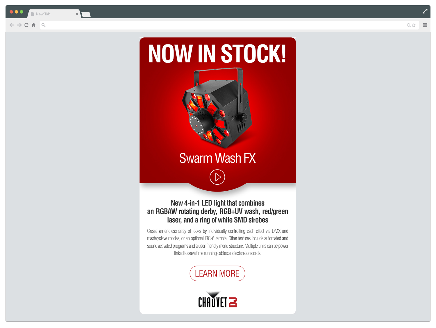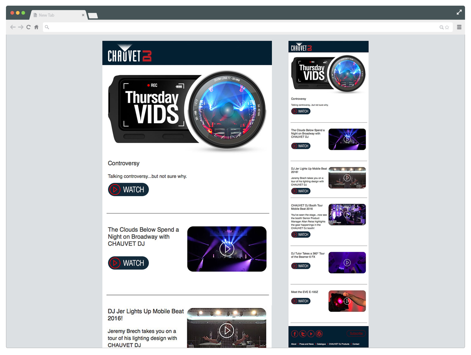 Chauvet Lighting was refreshing the entire look and feel of one of its brands. As part of the process, a new website was redesigned from scratch. Multiple features were updated, for instance, the look and feel were renewed using impactful colors and rounded shapes, along with bigger and improved product images. An entire set of icons was created to reorganize its product categories. Important aspects such as a new user experience and an interactive section for the users were also developed.