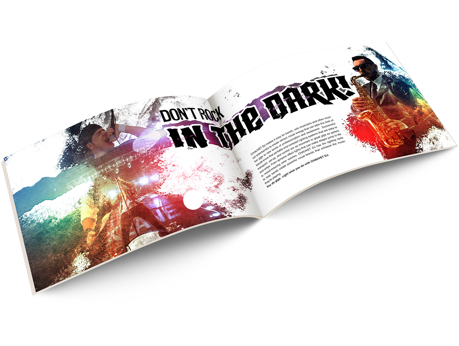 The brand CHAUVET DJ wanted to promote a series of lights specialized for rock bands and small concerts. The brochure was designed with a dynamic style to match the energy of a rock band. Each page contains colorful custom art that was inspired by mobile performers.