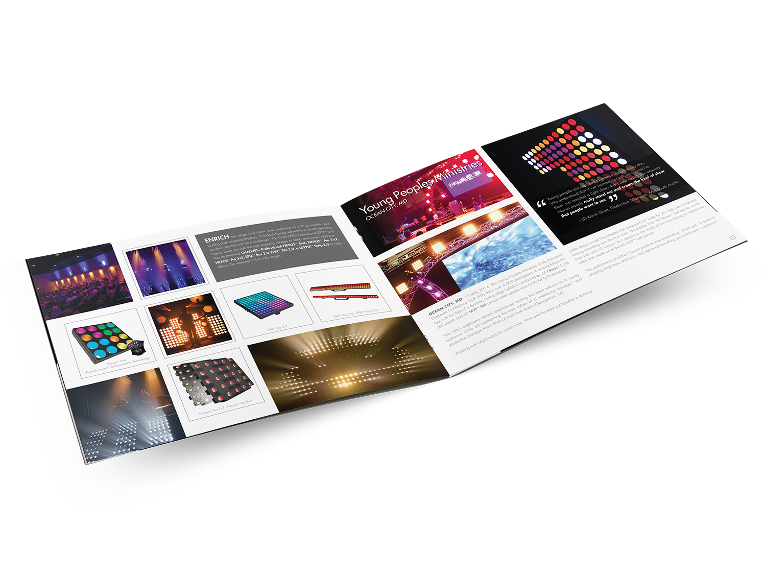 12-Page single brochure designed to promote special lights to illuminate houses of worship, churches, and temples.